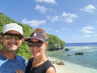 The thought of a hot shower, a comfy bed, and a few days on solid ground was too appealing to resist. We quickly booked ourselves into the Matavai Resort, a lovely spot perched on the cliffs with stunning views of the ocean. We rented a car and set off to explore the island, eager to share some of our favourite places with Jeff and Michelle.